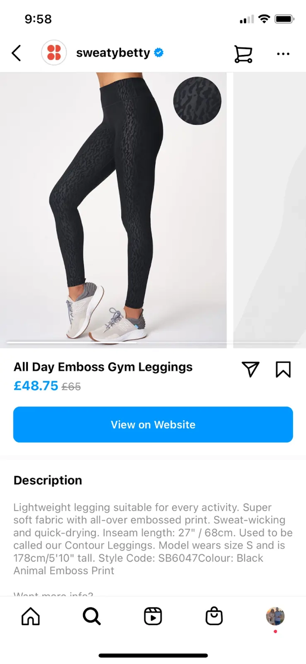Take Sweaty Betty, for example. Its Instagram Shop allows followers to natively shop products within its profile.